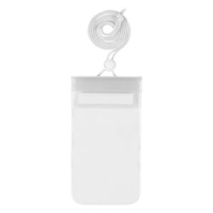 Waterproof pouch with adjustable neck cord.