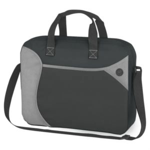 Briefcase/bag with adjustable shoulder strap and web carrying handle.