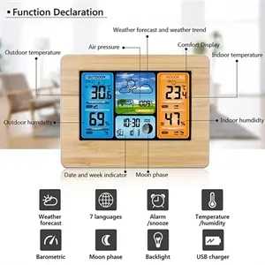 Weather Station Wireless Indoor Outdoor Thermometer Color Display Digital Weather Thermometer Atomic Clock Barometric Pressure