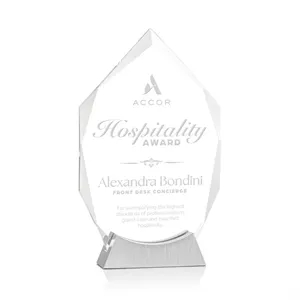 The Westmore Award is a striking recognition piece crafted from premium Starfire crystal with a bold geometric shape.