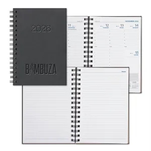 6 1/2" x 9 1/2" diary with a polyurethane cover, 128 pages, black wire, and square corners.