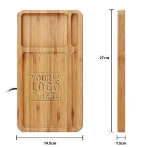 Wooden wireless charging pad desktop organizer