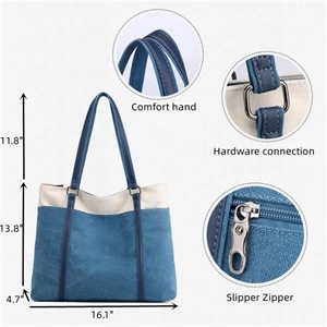 Women Laptop Tote Bag Lightweight Splice Canvas Handbag Purse Shoulder Bag
