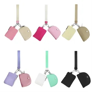 The dual pouch wallet can hold your ID, cards, keys, change, lipstick or any other portable item. Wrist strap for easy use.