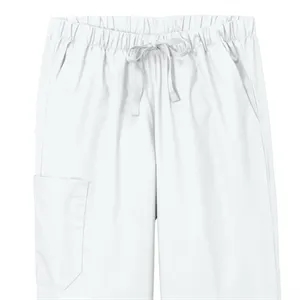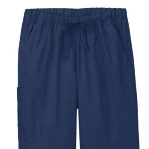 Women's cargo pants with a full drawstring, elastic waistband, front slash pockets, right side cargo pocket, and pen slot.