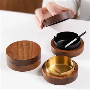 Windproof Wooden Ashtray with Stainless Steel Liner and Lid. Portable and Decorative.