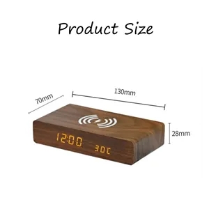 Digital Wooden Alarm Clock with 10W Fast Wireless Charging, LED Clock Wireless Charging 3 Level Light Dimmer with Charging Cable
