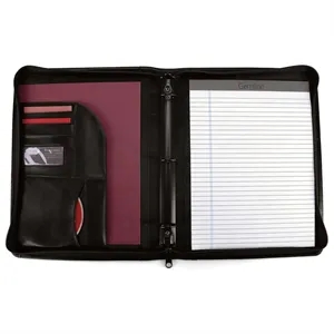 Handsome 1" black ringfolio with zippered closure.
