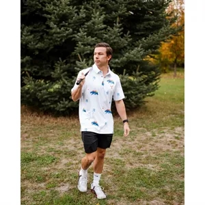 Athletic fit with 4-way stretch, moisture-wicking, wrinkle-resistant polyester-spandex blend for mobility and easy care.