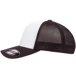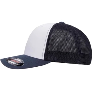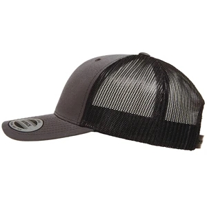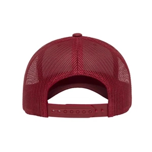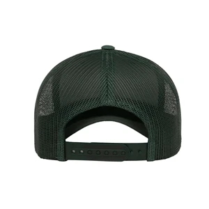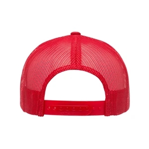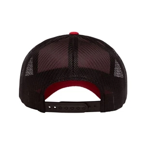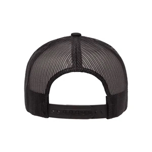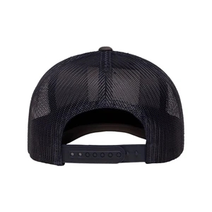 Structured, mid-profile, six-panel retro trucker cap with snapback closure. Blank.