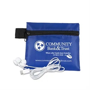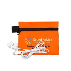 Tech kit with a 5" x 4 1/4" zipper pouch and Type-C earphones.