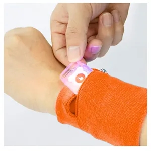 Absorbent sport wristbands with zippered pocket soft cotton sweat wicking stretchy fit for workouts. Rush service is available.