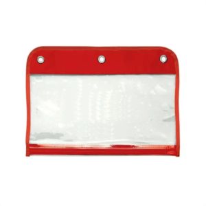 Clear portfolio pouch with zippered closure and three hole punches for binders.
