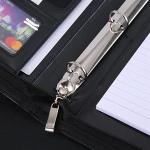 Premium Zippered Leather Portfolio w/ Pen Loop & Two Pockets
