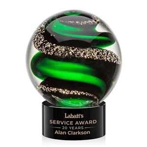 Magnificent Striking Zodiac Art Glass Award features twisting ribbons of emerald and glimmering black speckles.