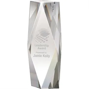 2" x 9.88" x 3.5" Zyra III large crystal tower award.