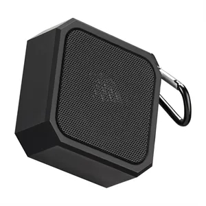 Wireless Bluetooth speaker with built-in rechargeable batter and detachable carabiner.