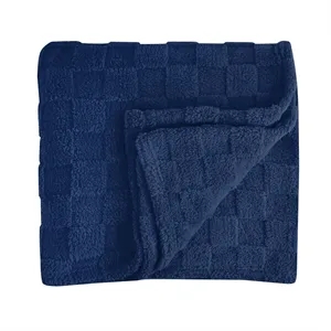 50" x 60" checkered Sherpa blanket made with rPET materials.